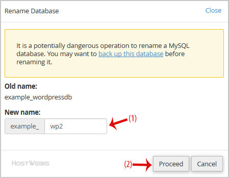 3. Under Current Databases, You can see a list of all your databases. Locate the Database and then click on Rename Icon.