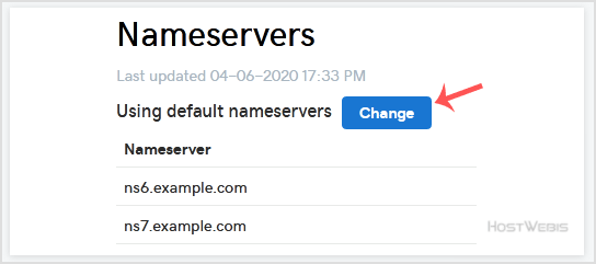 4. Scroll down to the Nameservers and click on Change.