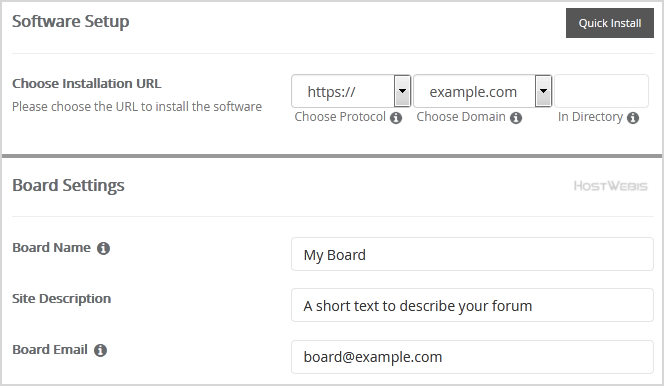 • Choose Installation URL: Choose the appropriate protocol/domain. Inside the "In Directory" field, should you want to install this in a directory, i.e., example.com/directory, enter the directory name. Otherwise, leave it blank to install in your main domain, i.e., example.com