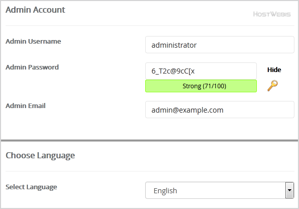 • Admin Username: Your new phpBB username (for security reason do not use the Administrator or the Admin username.)