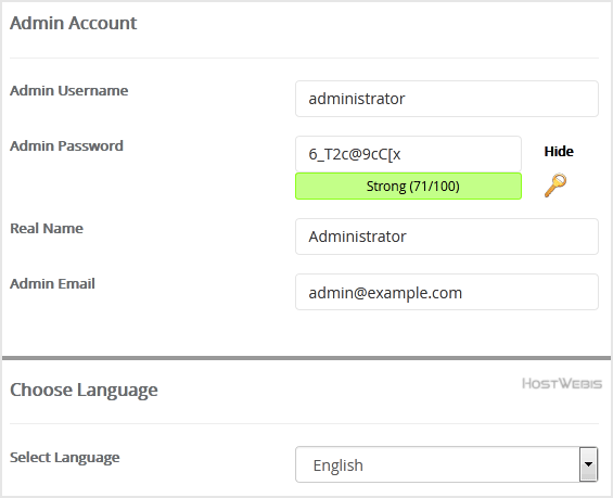 • Admin Email: Your e-mail address.