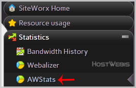 2. Under SiteWorx Menu, click the Statistics menu item if it is not already open.