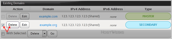 4. Under Existing Domains tab, Select Appropriate domain name you want to delete.