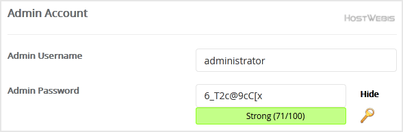 • Admin Username: Your new HTMLy username (for security reason do not use the Administrator or the Admin username.)