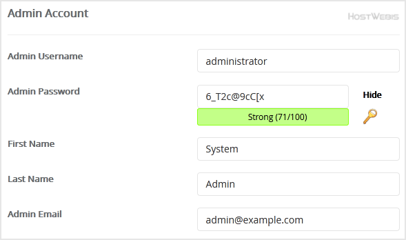 • Admin Username: Your new MovableType username (for security reason do not use the Administrator or the Admin username.)