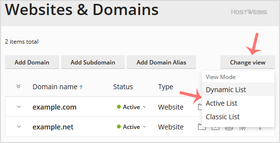 How to change view mode in Plesk?